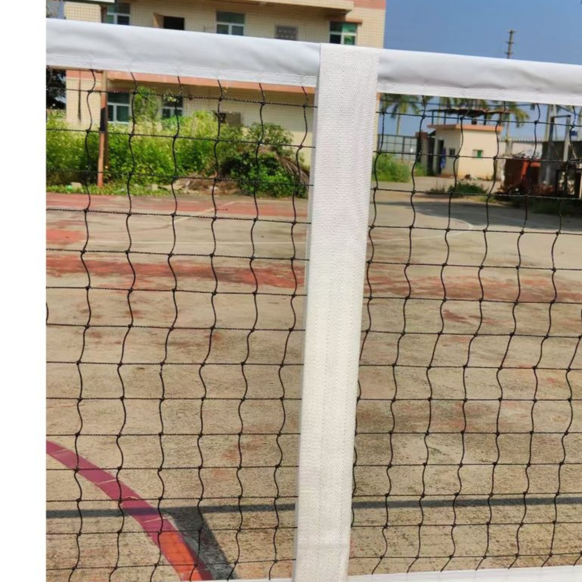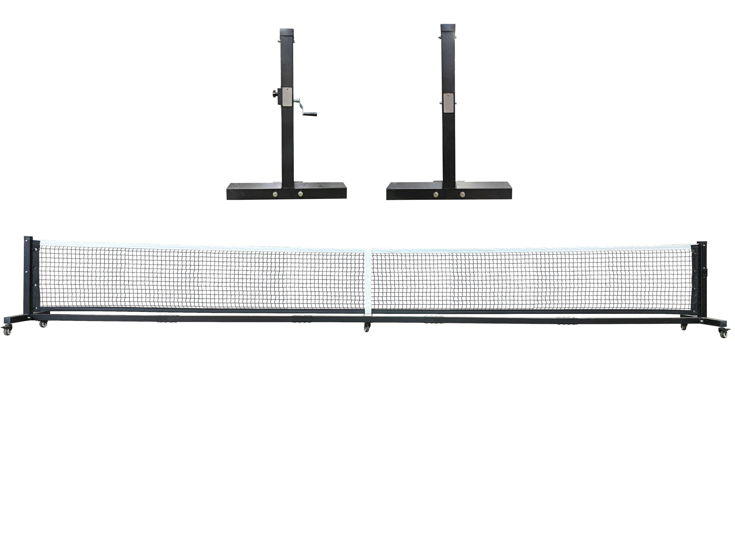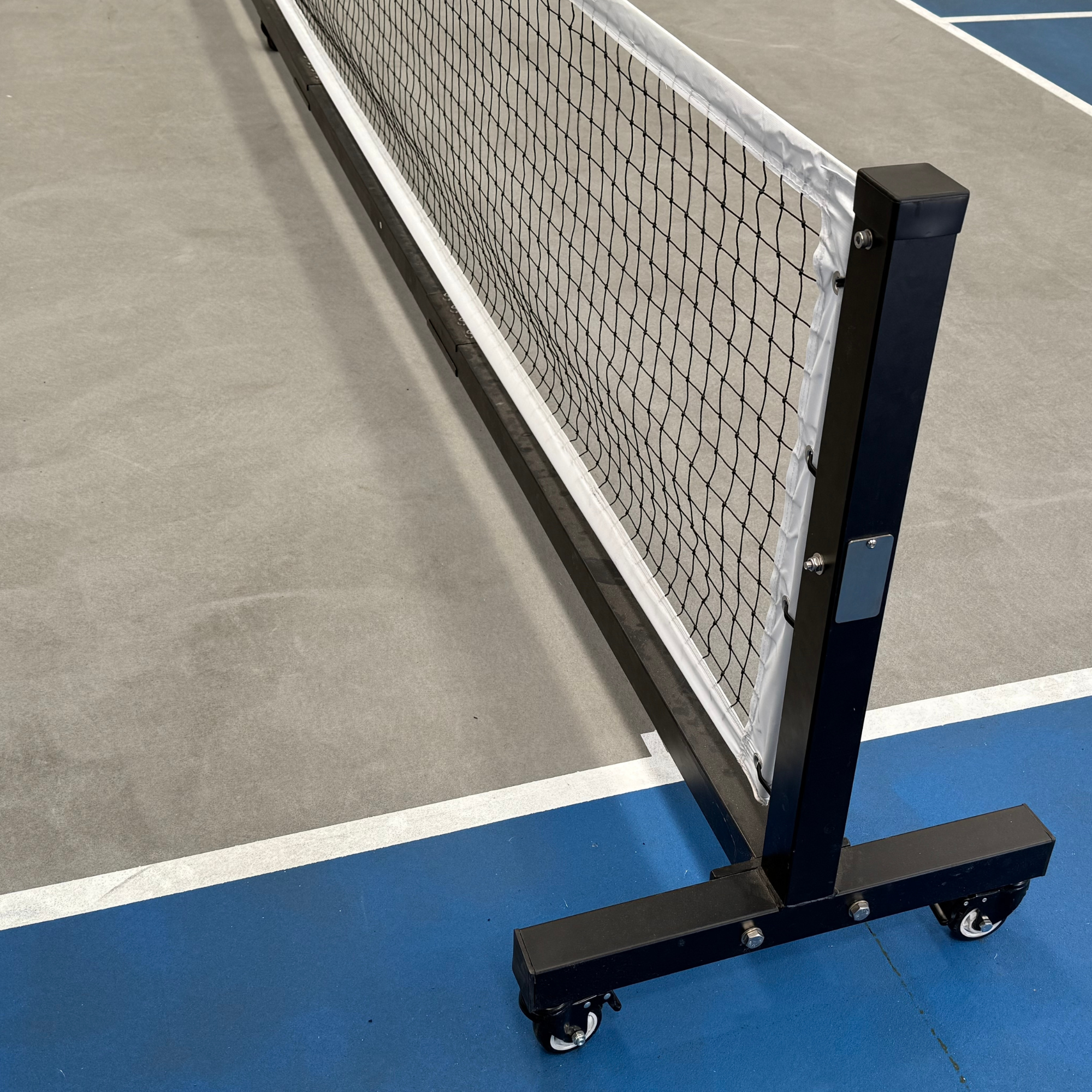 The official pickleball net height is 34 inches (85cm) in the middle and 36 inches (90cm) at the sidelines. The width is 22 feet (660cm), which allows for a foot (30cm) of clearance on either side of the 20-foot (600cm) court